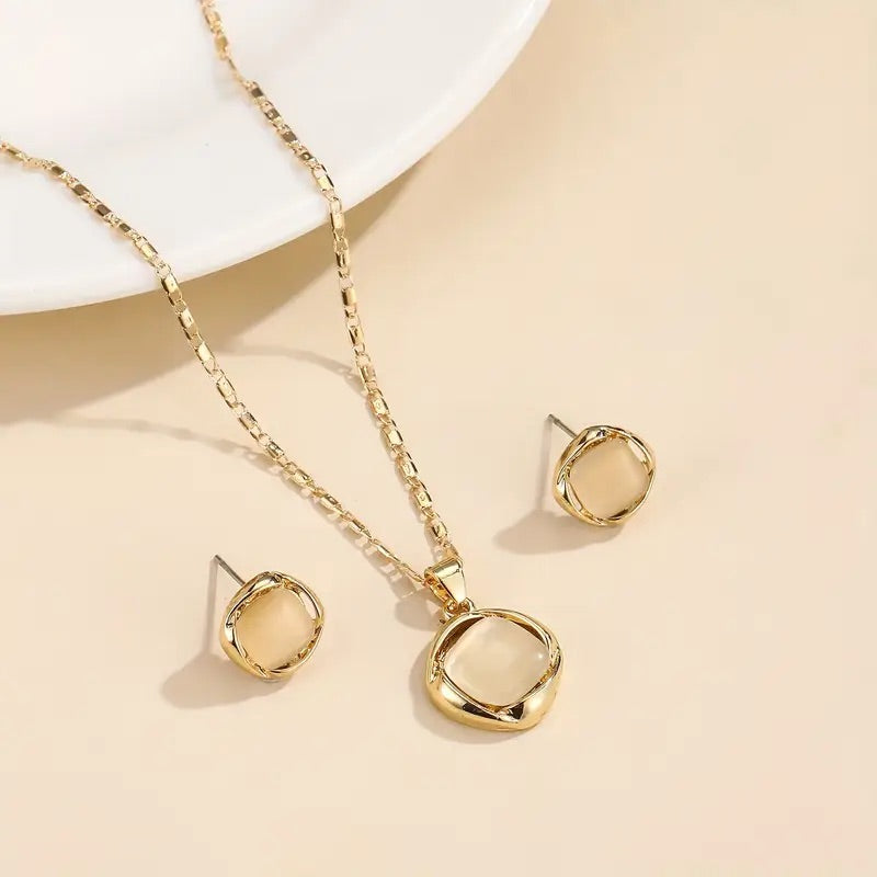Zestaw naszyjnika i kolczyków z zawieszką w kształcie kociego oka