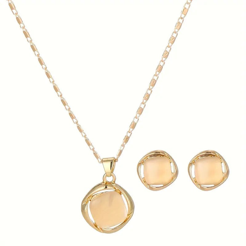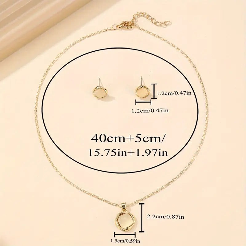 Świętuj styl i wyjątkowy blask dzięki temu eleganckiemu, dwuczęściowemu zestawowi biżuterii, składającemu się z naszyjnika i pasujących kolczyków z obrotowymi, zaokrąglonymi kwadratowymi zawieszkami w kształcie kociego oka. Wyrafinowany blask i nowoczesny wygląd sprawiają, że zestaw ten idealnie nadaje się jako dodatek na urodziny, imprezy lub jako wyjątkowy prezent dla bliskiej osoby. Idealny zarówno do noszenia na co dzień, jak i na uroczystości.