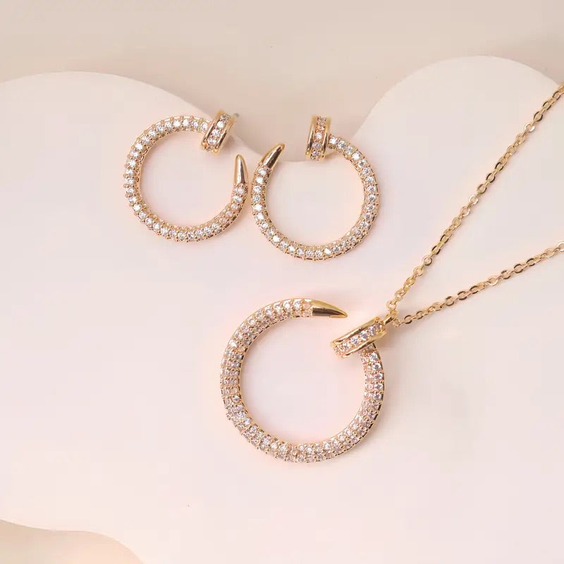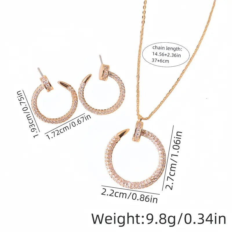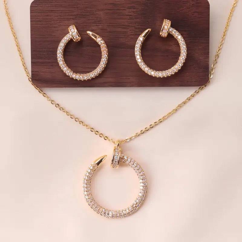 Świętuj ponadczasową elegancję dzięki temu inspirowanemu stylem vintage dwuczęściowemu zestawowi biżuterii dla kobiet, pokrytemu 18-karatowym złotem i ozdobionemu błyszczącymi syntetycznymi cyrkoniami. Zestaw zawiera parę eleganckich kolczyków i pasujący naszyjnik – idealny jako prezent na specjalne okazje, uroczystości lub jako luksusowy dodatek na cały rok. Klasyczny design w połączeniu z nowoczesnymi detalami nadaje każdej stylizacji ekskluzywny charakter.
